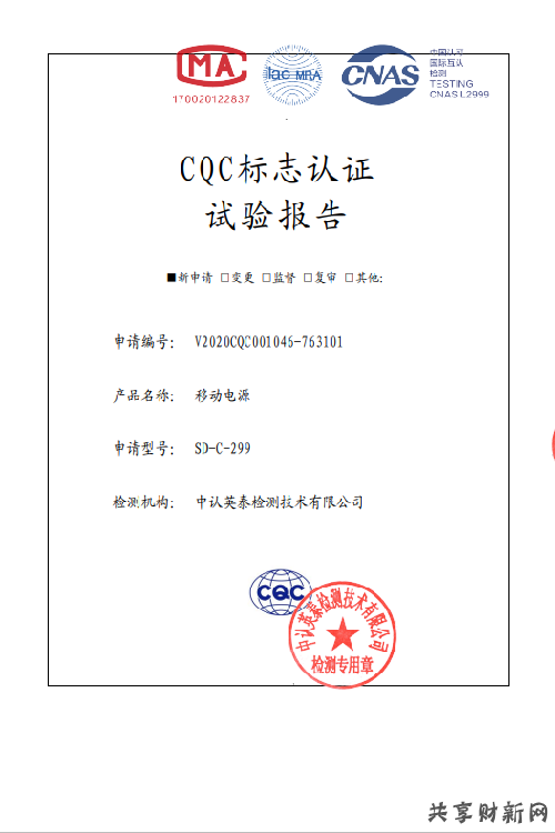 搜電共享充電寶的CQC檢測(cè)報(bào)告